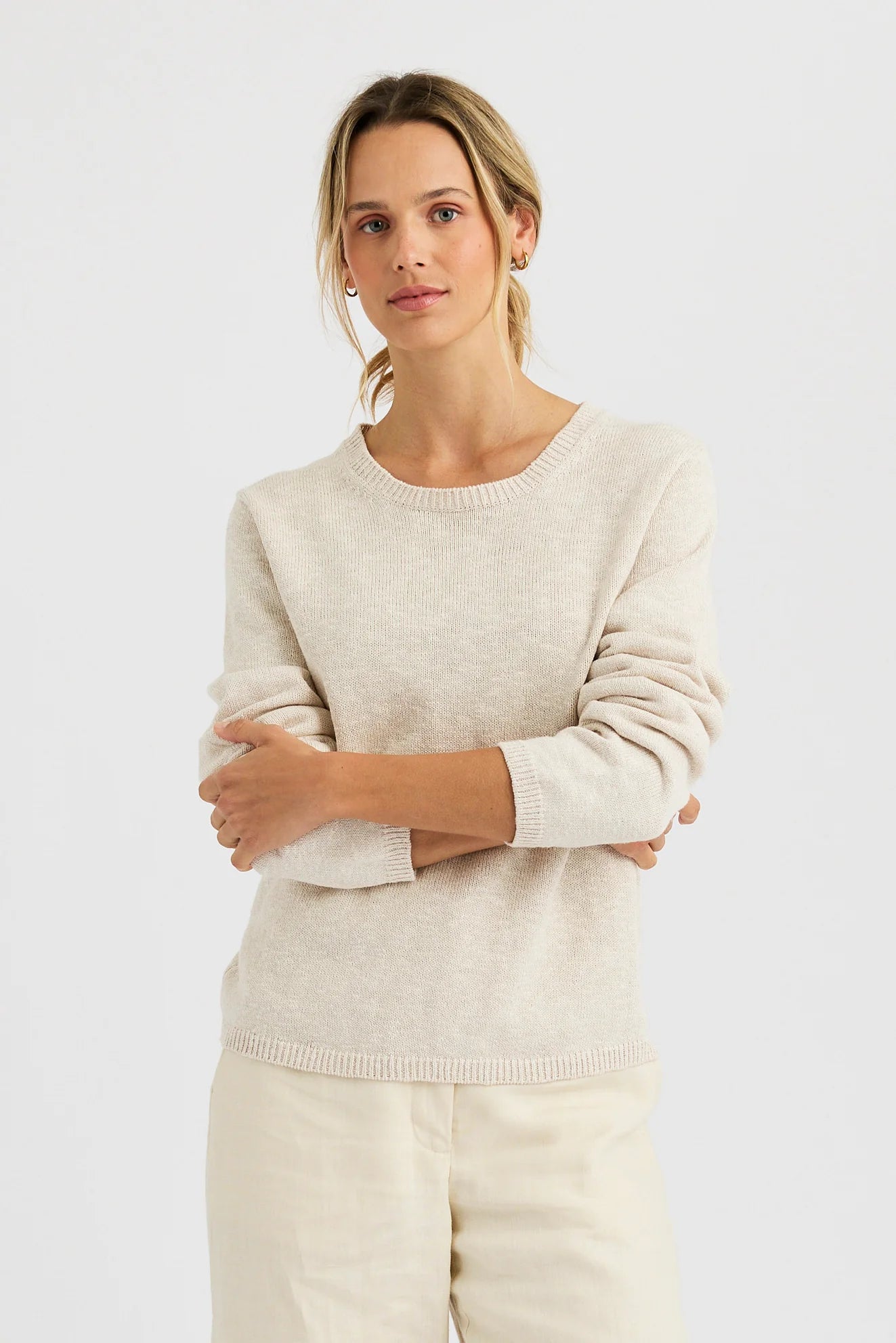 A timeless neutral with a playful twist, this ultra-soft knit sweater features a relaxed fit and effortless drape for everyday wear. The standout palm graphic on the back adds a subtle statement while keeping the look elevated and versatile. Lightweight yet cozy, it’s the perfect piece to take you from laid-back days to easy evenings.